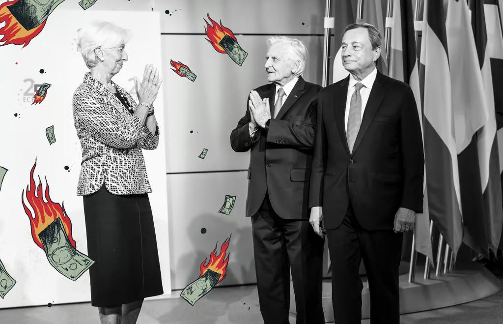 Potrebbe non sembrare molto, ma nel mondo arcano delle banche centrali equivaleva a lanciare una maledizione. Anni prima, Mario Draghi, il predecessore di Lagarde, aveva notoriamente “salvato l’eurozona” annunciando che la BCE avrebbe fatto “tutto il necessario” per sostenere miliardi di euro di debito sovrano a rischio. Le banche centrali fanno affidamento su un certo misticismo enigmatico, di cui Draghi, il tecnocrate solitario e formato dai gesuiti per eccellenza, aveva in abbondanza. Al semplice cenno dell’Italia, i mercati del debito si sono calmati. Draghi non ha nemmeno avuto bisogno di utilizzare il figurativo “bazooka” per inondare effettivamente l’eurozona di denaro. Sono bastate le sue parole.